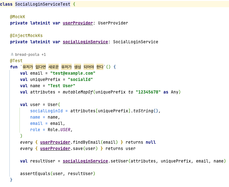 나는 테스트 코드를 비즈니스 로직에만 작성한다. 그렇다고 모든 비즈니스 로직에 작성하지는 않는다. 굉장히 간단한 로직을 테스트할 필요가 있을까?.. 나는 없다고 생각한다. 그래서 요구사항이 어느정도 복잡한 곳에만 테스트 코드를 넣는다. 그리고 외부 의존성을 가지는 데이터베이스 테스트는 하지 않는다. 개인적으로 의미가 그리 많지는 않다고 생각한다. 중요한건 비즈니스 로직이다.
